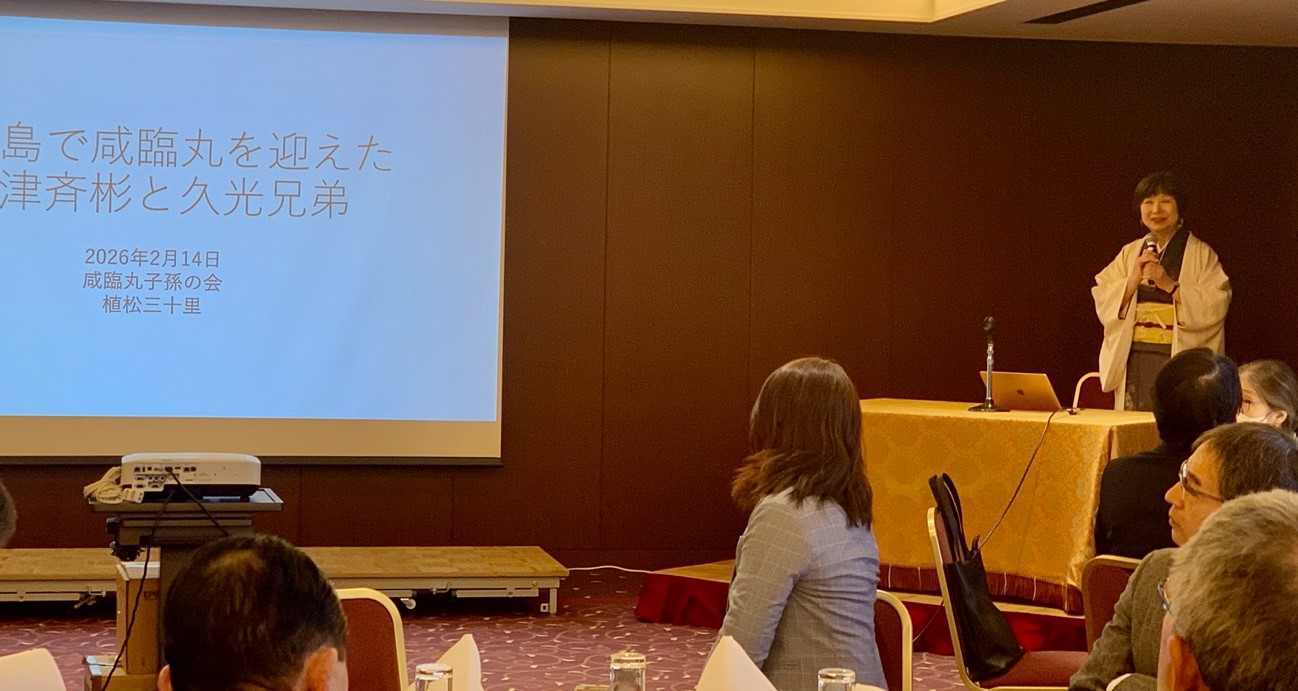 第28回(2026年度)の総会ならびに懇親会が、東京霞が関で開催され、北海道東北、中国四国、関西など遠方からの会員も含め40名が出席しました(その後の懇親会には関係者3名も含め43名が参加)。 藤本会長の開会挨拶ののち、例年どおり、昨年度の活動報告、決算報告(および会計監査)、今年度の活動計画、予算案、役員人事の5議案が提示され、原案どおり承認されました。 総会終了後、作家であり当会会員である植松三十里さんが、「鹿児島で咸臨丸を迎えた島津斉彬と久光兄弟」と題して約30分のミニ講演を行い、安政5年に長崎海軍伝習所の練習艦だった咸臨丸が鹿児島を2回訪れたことや、藩主斉彬と久光の関係など薩摩藩をめぐる当時の政情も交えて語りました。植松さんは昨年12月に『維新の虎 島津久光』(集英社文庫)を上梓されたばかりです。 その後、記念撮影をはさんで、着席のビュッフェスタイルの懇親会にうつりました。宴半ばからは咸臨丸乗組員ごとに子孫の方々がスピーチに立ち、会員になった由来や近況などを語り、会員間の理解を深めました。 | ![]() 総会会場での記念撮影 ![]() 植松三十里さんの講演 |